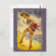 Cette carte postale très mignonne et drôle des jours de la Seconde Guerre mondiale montre une fille à la plage en vêtements de bain patriotiques avec un gros arc sur le dos de son maillot de bain et les mots, "Désolé, j'ai dû quitter mon eau derrière !" Ajoutez des mots à l'intérieur et créez une carte amusante.