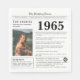 Wünschen Sie jemandem, der 1965 geboren wurde, alles Gute zum Geburtstag mit diesen einzigartigen Zeitungs-Napkins, die eine Sammlung von interessanten Fakten und Weltnachrichten aus dem Jahr ihrer Geburt enthalten. Seien Sie kreativ und erstellen Sie ein individuelles Andenken! Entworfen, um einer alten Zeitung mit schwarzem und weißem Text zu ähneln, kann es leicht mit einem Foto des Ehrengastes und ihrem Namen personalisiert werden. Feiern Sie die 1960er Jahre in einzigartigem Stil.