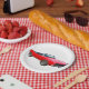 1967 Rotes Cabrio-Muskelauto Pappteller