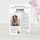 Begrüßen Sie den Geburtstag mit dieser einzigartigen Geburtstagskarte im Zeitungsstil, mit einem Foto des Empfängers und einer Sammlung von lustigen Fakten und Weltnachrichten aus dem Jahr 1990. Werde kreativ und erschaffe einen personalisierten Sake. Entworfen, um eine Vintage Zeitung im klassischen Schwarz-Weiß-Stil zu ähneln. Eine niedliche und lustige Art, die 90er Jahre zu feiern!