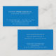 Ce carte de visite élégant affiche vos informations de manière propre et professionnelle en utilisant une police blanche moderne sur un arrière - plan bleu ciel. Cette conception est adaptée à tous les besoins. Les Cartes de visite sont un excellent outil de marketing pour les entreprises et les propriétaires de petites entreprises afin de promouvoir leurs services ou leurs produits dans de nombreux domaines d'activité comme l'éducation, le conseil, la finance, l'assurance, l'immobilier, la santé, la beauté, la condition physique, le style de vie, la voiture, l'informatique, l'informatique et bien d'autres encore. Sur ce carte de visite moderne et élégant, le nom et les lignes d'information d'affaires sont accentués par une ombre subtile. Vous pouvez choisir votre propre couleur de arrière - plan ou de police et vous pouvez également changer la couleur de l'ombre en customisant le design avec des outils de design Zazzles. Customisez le texte à l'arrière de la carte pour informer les clients et les partenaires commerciaux de votre service ou de vos produits ou supprimer les champs de texte dont vous n'avez pas besoin. Si ce carte de visite est destiné à un usage privé, vous pouvez ne pas donner trop d'informations pour protéger votre sécurité. Dans ce coque, vous pouvez utiliser le recto de la carte pour imprimer votre nom et vos e-mails et inscrire votre numéro de téléphone au verso de la carte lorsque vous la distribuez. Montrez votre professionnalisme à vos clients et amis et faites une impression durable en choisissant des tirages professionnels cartes de visite Zazzles.
