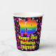 Dieses fröhliche und lustige Geburtstagsthema Papier Becher Design zeigt eine große Zahl "19" mit einem inspirierten Regenbogenspektrum-Muster, zusammen mit der Meldung "Happy 19. Geburtstag", und einem individuelle Name. Der Hintergrund ist mit roten, rosa und lila Herzformen unterschiedlicher Größe gestaltet. Liebende, optimistische Tassen wie diese könnten Spaß machen, bei einer Geburtstagsfeier zu feiern, um jemandes neunzehnten Geburtstag zu ehren. [~Z0000548]