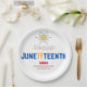 19. Juni 9" Rundpapier-Platte. Werfen Sie ein spektakuläres Party mit diesen anpassbaren Papier-Tellern, um die Jungsteinzeit zu feiern. Jedes Set Teller aus Papier ist auf einem langlebigen Papier gedruckt und mit der Dekoration des 19. Juni dekoriert. Diese Teller eignen sich hervorragend für Hauptmahlzeiten, Häppchen oder Salate. Bestellen Sie diese mit unseren Papierservietten für ein komplettes Set von Jubelgeschirr, das Ihre Gäste Liebe geben werden! FDA-konform für die Lebensmittelsicherheit. Ideal für das Abendessen, Mittag- und Vorspeisen oder Salate, gedruckt in den USA.