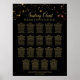 Faites de votre réception de mariage une belle avec ce tableau de sièges. Conçu dans le cadre de notre Suite Mariage Shimmering Sparkles, il présente un design élégant mais fantaisiste d'étoiles roses et dorées avec du texte doré sur un arrière - plan noir. Ce graphique montre les affectations de table afin que vos invités aient un temps facile à trouver la bonne table.