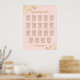 Ce magnifique tableau de sièges mariages propose des assignations de table pour 190 personnes, avec 10 personnes à chaque table. Le design est simple mais élégant avec du texte doré sur un arrière - plan rose clair. Il y a des boucles et des tourbillons en dentelle or faux feuille dans les coins et la calligraphie de script fantaisie lisant "s'il vous plaît trouver votre table."