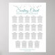 Faites de votre réception de mariage une belle avec ce tableau de sièges. Conçu dans le cadre de notre Turquoise & Grey Elegant Wedding Suite, il présente un design simple mais élégant avec du texte turquoise ou turquoise & gris sur un arrière - plan blanc avec une bordure florale en faux feuille argent. Ce graphique montre les affectations de table afin que vos invités aient un temps facile à trouver la bonne table.