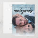 Du bist verheiratet! Glückwunsch! Zeigen Sie eines Ihrer besten Fotos, während Sie Ihre Ankündigung mit dieser Handschrift Typografie und Ihrer Foto-Einladung machen. Hat Platz für einen Empfang Einladung. Dieses Design bietet Platz für 3 Fotos! Erhältlich mit Schwarz-Weiß-Schrift.