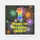 Dieses spannende und lustige Geburtstagsthema Papier Serviette Design zeigt eine große Zahl "1" mit einem farbenfrohen Regenbogenspektrum inspirierte Muster. Es enthält auch die Meldung "Happy 1st Birthday", und einen bearbeitbaren Namen. Der Hintergrund zeigt ein spannendes und farbenfroh inspiriert Muster, das durch das Aussehen begrabener feierlicher Feuerwerke wird. Geburtstagsgezapftete Servietten wie diese könnten sich bei einem Party für jemanden, der seinen 1. Geburtstag feiert, amüsieren lassen. [~Z0000574]