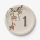 Niedliche hängende braune Affen auf weich-braunem Rasen texturierten Hintergrund für den 1. Geburtstag. Alter kann bearbeitet werden.