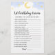 Kaufen Sie dieses bearbeitbare Grünspiel und genießen Sie hochwertige 1. Geburtstag Trivia Wie gut kennen Sie die Karte für Ihre Veranstaltung! Dies ist eine Spielvorlage, Sie können die Fragen, wie Sie möchten ändern! Aquarellsterne und Monddesign.