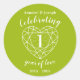 Peridot feiert 1 Jahr Liebe Jubiläumsaufkleber. Einfache Kontur Herzsteine Linie Kunstgrafik Grün und Weiß 1. Peridot Geburtstagsaufkleber. Passen Sie Ihre Party für das erste Hochzeitsjubiläum an. 1. Jubiläum ist mit grünem Peridot Edelstein assoziiert und das Herz symbolisiert Liebe. Grafik und Design von Sarah Trett für www.mylittleedenweddings.com auf zazzle.