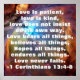 Liebe ist geduldig, Liebe ist nett, Liebe besteht nicht auf ihrem eigenen Weg. Liebe trägt alles, glaubt alles, hofft alles, hält alles. Liebe versage nie. - 1 Korinther 13:4-8