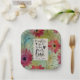 Teller mit inspirierender Christlicher Schrift zeigen eine abstrakte, blumenfarbene Aquarellfarbe mit rosa und schwarzen Blume auf grünem Hintergrund. Es enthält ein geliebtes Bibelverse aus 1 Korinthen 16 14, "lass alles, was du mit Liebe machst."
