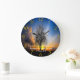 1 Peter 5:7 Baum in einem Feld mit blauem Himmel Große Wanduhr