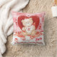 Ce coussin sucré pour la toute première Saint-Valentin d'un bébé est accompagné d'un mignon ours en peluche assis sur une couverture contre un grand coeur rouge. Il tient la suce et la bouteille d'un bébé et sourit comme un jouet fait d'épingles de sécurité passe à côté. Il peut être customisé avec le nom de votre bébé.