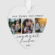 Célébrez le 1er jour férié joyeux de votre fiançailles avec un collage photo personnalisé 4 "Notre premier ornement acrylique de Noël engagé" en forme de coeur. Toutes les formulations et les images de ce modèle sont simples à personnaliser. (CONSEIL EN MATIÈRE DE PLACEMENT D'IMAGE : Une façon simple de positionner une image exactement comme vous voulez est de la rogner avant de la télécharger sur le site Zazzle.) Le design minimaliste moderne en noir et blanc présente un script manuscrit décontracté, une typographie vintage classique et quatre images de votre choix. Cette tenue mariage unique ajoute une touche élégante aux décorations de la maison de Noël du couple engagé.