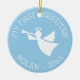Le 1er ornement d'ange blanc de Noël du bébé. Ajoutez votre propre image photo au dos en option. Design d'oiseau élégant avec modèle de typographie stylisé pour le nom et la date (2017). Belle conservation pour le premier Noël du nouveau-né. Customiser la couleur arrière - plan à rose ou bleu girly pour nouveau bébé fille ou garçon. Chaîne de parties scintillant d'or incluse. Décorations de Noël personnalisées pour enfants et nouvelle maman ou papa / parents. Joyeuses fêtes !