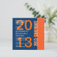 Dieser blaue und orange Entwurf ist eine elegante Weise, Ihre Gäste zu einem Abschluss-Party einzuladen. Aller Text ist total kundengerecht. Sie können die Textfarbe für einen anderen Blick ändern. Obgleich dieser Entwurf auf grundlegendem Papier gekennzeichnet wird, empfehle ich auch das hued metallische Papier des Eises, das Ihren Einladungen einen festlichen Schimmer und einen Glanz gibt.