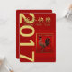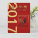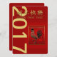 Chinesische Neujahrskarte 2017 Einladungskarte (2) mit individualisierbarem Jahr (vorne) = Digitaler Prägung und Emaille für dieses Design von Rooster in Schwarz und Gold auf rotem "Seide" Hintergrund mit einem einfachen goldenen Rahmen. Goldene Schrift mit Schatten (nicht anpassbar) und Metall-rot Symbol von Rooster. Einladungskarte für das chinesische Neujahr 2017. Vergessen Sie nicht die ganze Kollektion und ähnliche Produkte: Chinesische Neujahrskarte, Postkarte, Porto, Aufkleber und mehr...