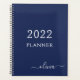 2022 Navy Blue White Girly Script Monogram Name Planer