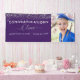 2023 Glitzer Silver und Lila Abschluss Klasse der individuelle Name, Foto, Schule, und Jahr Graduation Party Banner. Mit diesem eleganten und modernen Namensbanner können Sie dieses Banner für den geschlossen Senioren individuell gestalten.