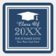 2023 graduation seals | Custom graduate stickers. Custom graduation stickers with graduate hat / cap. Stylish navy blue and white round favor stickers with customizable class of year etc. Cute icon with monogrammed name initials plus date. Personalized thank you stickers, favor label, envelope sealers / seals. Elegant script typography. Chic design / fancy square border design. Customizable background color. Suitable for high school, college, university etc. Also good for school reunion parties.