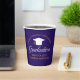 Diese chic lila und goldfarbenen, speziell für Senior Graduiertengruppen gefertigten Papiertassen sind mit klassischer weißer Typografie unter einem High School- oder Uni-Namen für die Klasse von 2023 ausgestattet. Passen Sie diese Tasse mit Ihrem geschlossen Jahr unter der eleganten Kalligrafie für eine personalisierte Graduiertendekoration an.