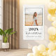 Herzlichen Glückwunsch an Ihren Absolvent mit diesem stilvollen Abschluss-Ankündigung und Party-Banner, das ein Senior-Foto mit minimalistisch schwarz umrissenen Rahmen, Klassenjahr in fett gedruckten Text, und einfache moderne Formulierung, die mit dem Namen Ihres Absolventen in Drehbuch und High School personalisiert werden kann. Klassisches und sauberes Schwarz-Weiß-Farbschema.