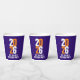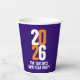 2023 New Year's Eve white and orange text design on dark blue custom event paper cups. Personalize with your own event details. Other matching items ist schluckbar. Design by www.mylittleeden.com