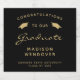 Feiern Sie den Meilenstein Ihres Absolventen stilvoll mit diesen individuellen Abschluss-Schaumweinflaschen-Etiketten, die mit den Worten "Herzlichen Glückwunsch an unseren Absolventen" in goldfarbenem Text auf schwarzem Hintergrund, verziert durch ein Paar goldfarbener Mörtel-Kappen. Das Wort "Graduate" erscheint in einem anmutigen Skript im Handschriftenstil. Personalisieren Sie es mit dem Namen, der Schule und dem Jahr des Abschlusses.