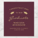 Feiern Sie den Meilenstein Ihres Absolventen stilvoll mit diesen individuellen Abschluss-Weinflaschen-Etiketten, die mit den Worten "Herzlichen Glückwunsch an unseren Absolvent" in goldfarbenem Text auf bordeauxfarbenem Hintergrund, verziert durch ein Paar goldfarbene Mörtel-Kappen. Das Wort "Graduate" erscheint in einem anmutigen Skript im Handschriftenstil. Personalisieren Sie es mit dem Namen, der Schule und dem Jahr des Abschlusses.