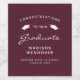 Feiern Sie den Meilenstein Ihres Absolventen stilvoll mit diesen individuellen Weinflaschen-Etiketten aus Abschluss, die mit den Worten "Herzlichen Glückwunsch an unseren Absolventen" in weißem Text auf bordeauxrotem Hintergrund, verziert durch ein Paar weißer Mörtel-Pappkappen. Das Wort "Graduate" erscheint in einem anmutigen Skript im Handschriftenstil. Personalisieren Sie es mit dem Namen, der Schule und dem Jahr des Abschlusses.
