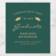 Feiern Sie den Meilenstein Ihres Absolventen stilvoll mit diesen individuellen Abschluss-Weinflaschen-Etiketten, die mit den Worten "Herzlichen Glückwunsch an unseren Absolvent" in goldfarbenem Text auf dunkelgrünem Hintergrund, verziert durch ein Paar goldfarbener Mörtel-Kappen. Das Wort "Graduate" erscheint in einem anmutigen Skript im Handschriftenstil. Personalisieren Sie es mit dem Namen, der Schule und dem Jahr des Abschlusses.