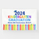 Dieses niedlich anpassbare Kindergarten-Banner aus dem Jahr 2024 verfügt über eine coole Gradmütze über farbenprächtigen Schriften und eine Reihe von Stiften im Regenbogen. Cooler Kindergärtner-Absolvent signiert in lustigen Farben für den letzten Tag der Grundschule mit Ihrem Schulnamen in blau. Herzlichen Glückwunsch an unsere freundlichen Absolventen!