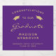 Feiern Sie den Meilenstein Ihres Absolventen stilvoll mit diesen individuellen Abschluss-Schaumweinflaschen-Etiketten, die mit den Worten "Herzlichen Glückwunsch an unseren Absolventen" in goldfarbenem Text auf einem lila Hintergrund, verziert durch ein Paar goldfarbener Mörtel-Kappen. Das Wort "Graduate" erscheint in einem anmutigen Skript im Handschriftenstil. Personalisieren Sie es mit dem Namen, der Schule und dem Jahr des Abschlusses.