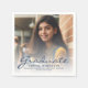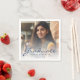 Moderne Graduiertenservietten mit einem eigenen Foto mit Texteüberlagerung. Ersetzen Sie das Beispielbild einfach durch ein Foto Ihres Absolventen. Das Wort "Graduate" erscheint in marineblauer Schrift mit dem Namen, der Schule und dem Jahr des Abschlusses unten in serifenlosen Schriftart. Ein Überlagerungsfenster mit weißem Farbverlauf trägt dazu bei, den Pop des marineblauen Textes zu erzeugen. Ideal für High School oder Uni-Abschluss.
