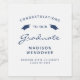 Feiern Sie den Meilenstein Ihres Absolventen stilvoll mit diesen individuellen Abschluss Weinflaschen-Etiketten, die mit den Worten "Herzlichen Glückwunsch an unseren Absolvent" in marineblau auf weißem Hintergrund, verziert durch ein Paar marineblaue Mörtel-Kappen. Das Wort "Graduate" erscheint in einem anmutigen Skript im Handschriftenstil. Personalisieren Sie es mit dem Namen, der Schule und dem Jahr des Abschlusses.
