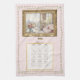 2025 Calendrier serviette à thé - Scène encadrée de Paris de l'intérieur d'un appartement - serviette de cuisine décorative. Arrière - plan damassé rose. Le texte "Paris" peut être modifié en message personnalisé. Merci d'avoir cherché.