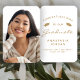 Helfen Sie Ihren Abschlüssen, während der Zeremonie oder Party cool behalten mit diesen maßgeschneiderten Foto Abschluss-Fans, mit den Worten "Herzlichen Glückwunsch zu unserem Graduate" in Goldtext auf einem weißen Hintergrund. Das Wort "Graduate" erscheint in einem anmutigen Skript im Handschriftenstil. Ein Paar goldfarbene Mörtel verzieren den oberen Teil des Ventilators. Personalisieren Sie eine Seite mit dem Namen, der Schule und dem Jahr des Abschlusses Ihres Abschlusses. Ersetzen Sie das Beispielbild auf der anderen Seite einfach durch ein Foto Ihres Abschlusses.