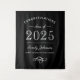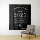 Elegantes und modernes Foto-Bannerzeichen der Graduierungsparty "Herzlichen Glückwunsch" mit stilvollem Typografie-Design und einem klassischen Schwarz-Weiß-Farbschema. Personalisieren Sie mit dem Namen und der Schule des Absolventen. Beachten Sie, dass Designfarben an andere Party- oder Schulfarben angepasst werden können.