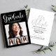 Einfach stilvolle Abschluss-Anzeigenkarte und Party Einladung bietet "Graduate" in einem trendigen Kalligrafieschrift mit einer modernen Foto-Collage von vier (4) Fotos des Abschlusses. Das zweiseitige Kartendesign beinhaltet den Wortlaut der Graduierungspartei "Let's Celebrate" und Details auf der Rückseite. Klassisches Schwarz-Weiß-Design mit silberfarbenen Akzenten.
