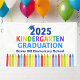 Dieses niedlich anpassbare Kindergarten-Banner aus dem Jahr 2025 mit einer coolen Graterkappe über farbenprächtigen Schriften und einer Reihe von Abschlüssen im Regenbogen. Cooler Kindergärtner-Absolvent signiert in lustigen Farben für den letzten Tag der Grundschule mit Ihrem Schulnamen in blau. Herzlichen Glückwunsch an unsere freundlichen Absolventen!