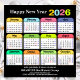 Calendrier 2026 sur Noir moderne Typographie simple Calendrier d'entreprise Carte magnétique avec coloré Calendrier 2026. Tous les textes sont pré-arrangés pour que vous personnalisiez facilement et rapidement avec vos propres détails.