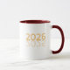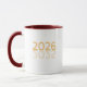 Start 2026 with a Warm Cup! This stylish two-tone ceramic mug features a crisp white body and a rich maroon (or burgundy) colored handle and inner rim. The front showcases a minimalist "2026" design in a soft gold/tan with a reflection effect, symbolizing new beginnings. It's the perfect daily essential for coffee, tea, or cocoa, and makes an excellent gift for colleagues, friends, or family to celebrate the incoming year 2026!