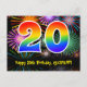 20. Geburtstag - Fun Fireworks Pattern + Regenboge Postkarte