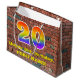 Dieses lustige und lebendige Geschenktütendesign, das von Graffiti und urbaner Kunst inspiriert wurde, zeigt eine große Zahl "20" mit einem inspirierten Regenbogenmuster. Es enthält auch die Meldung "Happy 20 th Birthday", und einen individuelle Name. Der Hintergrund weist ein Ziegelwandmuster auf. Eine bunte Geburtstagsgeschenktasche wie diese könnte eine lustige Art sein, ein Geschenk oder Geschenk zu verpacken, das jemandem gegeben wird, der seinen zwanzigsten Geburtstag feiert. [~Z0000522]