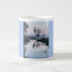Das Bild auf der Vorderseite dieser Tasse zeigt einen Landstrom an einem miessigen Morgen.