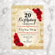 Invitation du 20e anniversaire. Design élégant en or et rouge. Comprend des bandes d'or de parties scintillant fausse, des roses rouges police de caractères stylisés et des confettis. Parfait pour une fête d'anniversaire glam.