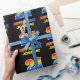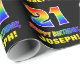 Dieses fröhliche, lustige und farbenfrohe Geburtstagsgepackte Papier-Design zeigt eine große Zahl "21" und die Meldung "HAPPY BIRTHDAY", beide mit einem Regenbogenspektrum inspirierte Musterfärbung, zusammen mit einem kühnen gelben benutzerdefinierten Empfängernamen. Der Hintergrund ist schwarz. So ein lustiges Packpapier kann verwendet werden, um ein Geburtstagsgeschenk oder Geschenk für jemanden zu verpacken, der seinen 21. Geburtstag feiert. [~Z0000475]
