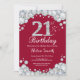 21. Geburtstag Burgund Red und Silver Diamond Einladung